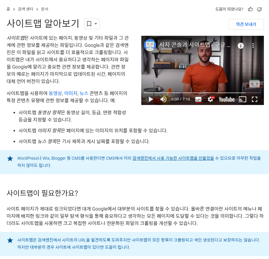 아래 구글 검색 센터의 글들을 보면 Sitemap와 RSS를 등록하는 것이 좋다고 적혀있습니다.