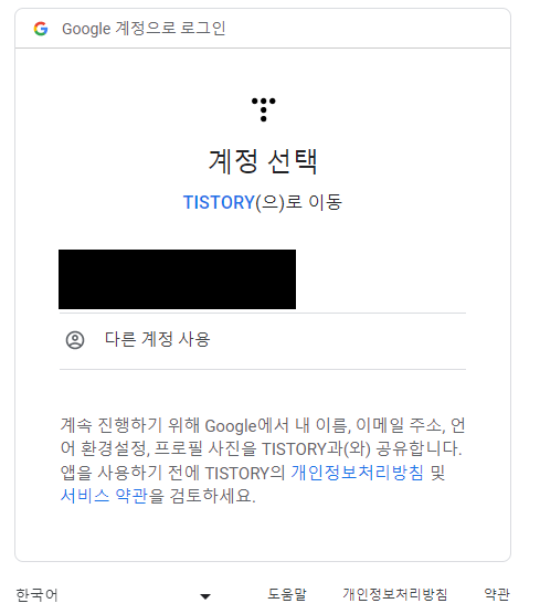 ③ 구글 계정으로 로그인하기, 이미 로그인 되어있으면 계정 선택