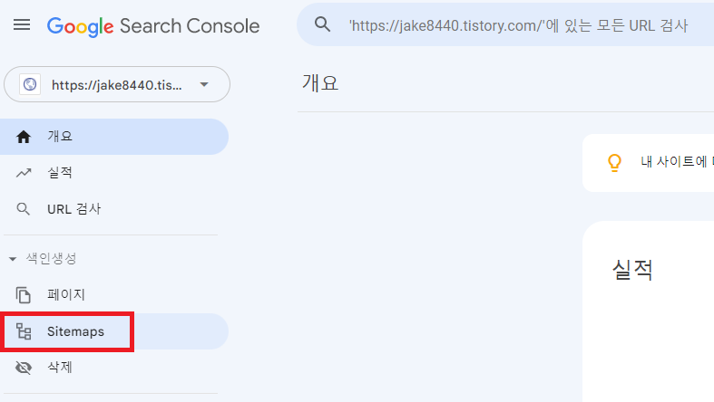 ② 구글 서치콘솔 좌측의 'Sitemaps'를 클릭합니다.