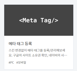 그렇게 메타 태그를 스킨에 넣으려고 했는데, 찾아보니 티스토리 플러그인 중에 '메타 태그 등록'이라는 것이 있었습니다. 이걸 활용하면 굳이 스킨변경할 필요 없이 메타 태그를 등록하고 관리할 수 있을 듯 합니다. 나중에 제가 어떤 걸 넣었는지 관리하기도 훨씬 편해진 것 같네요.