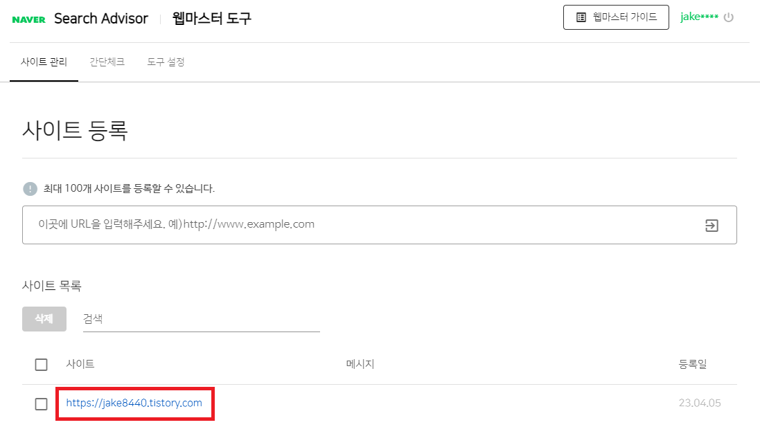 - 사이트맵 URL : https://jake8440.tistory.com/sitemap